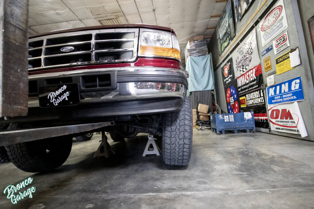 We are gearing up to convert this beautiful 1996 Bronco from the factory twin traction beam setup to a solid axle front end. While we are under the truck we are going to keep you updated on the install and the cool stuff we have in store for this build. This Eddie Bauer edition came in to be part of the film series covering all the goodies we offer for the Full-Size Bronco on Bronco Garage. It’s in great shape and has definitely been taken care of for the past 24+ years. We dubbed it “Hot Sauce” it features a built 5.8 with a Holly Sniper EFI installed, and a great sounding exhaust. It currently has a leveling kit on the truck and the owner uses it to tow his toys to the various parks around Tennessee for recreational use. We are going to take you through all the Levels of our solid axle conversion as well as answer any questions you may have about completing this build on your personal Bronco.