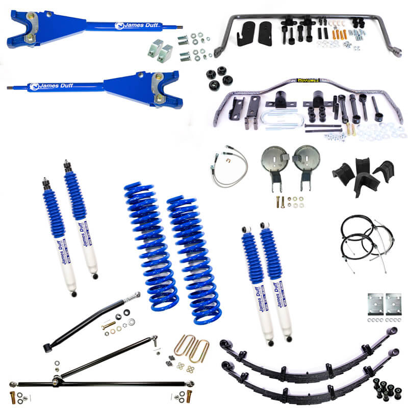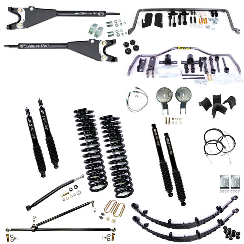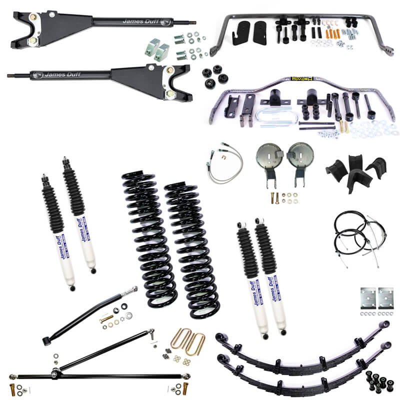 You can also add on great upgrades when purchasing these springs like Leaf spring and shackle mounting hardware, Shackle bushings, the Duff HD spring plates, U bolts or HD U- bolts (both that come standard with new HD hardware), HD shackles, pinion shims, lift blocks and new Duff HD weld on spring perches offered in factory and 1" built-in lift.