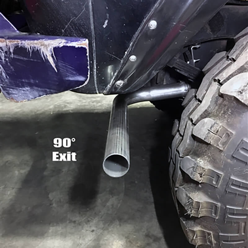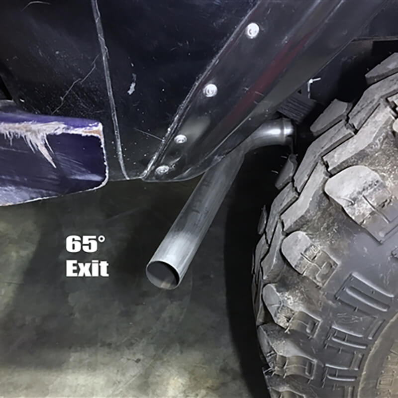 We separated the back pipes into 2 sections also allowing for options on the exit angles and easy removal for trail riding to avoid tearing them up. If you do smash one of the tailpipes on the trail you can purchase new replacements.