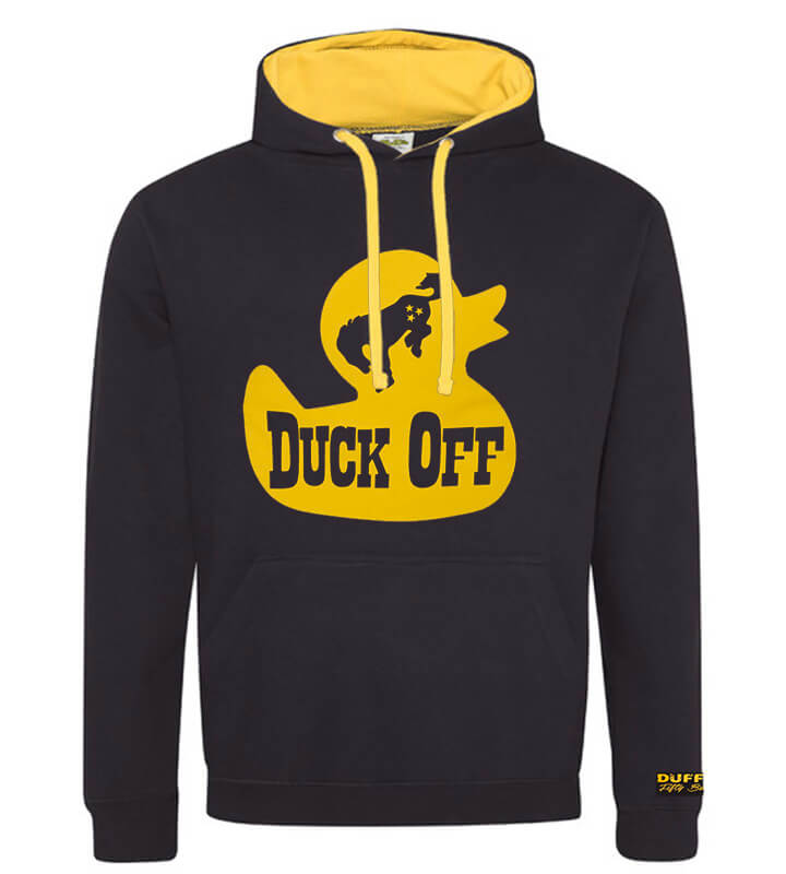 The Duck Off Hoodie combines a bold design with a durable, comfortable fabric, making it a stylish yet practical choice. With features that enhance usability and style, it is perfect for everyday wear.
