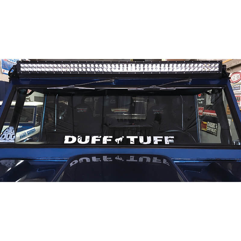 Introducing the Duff Tuff Windshield Decal Sticker, a symbol of rugged durability and style.