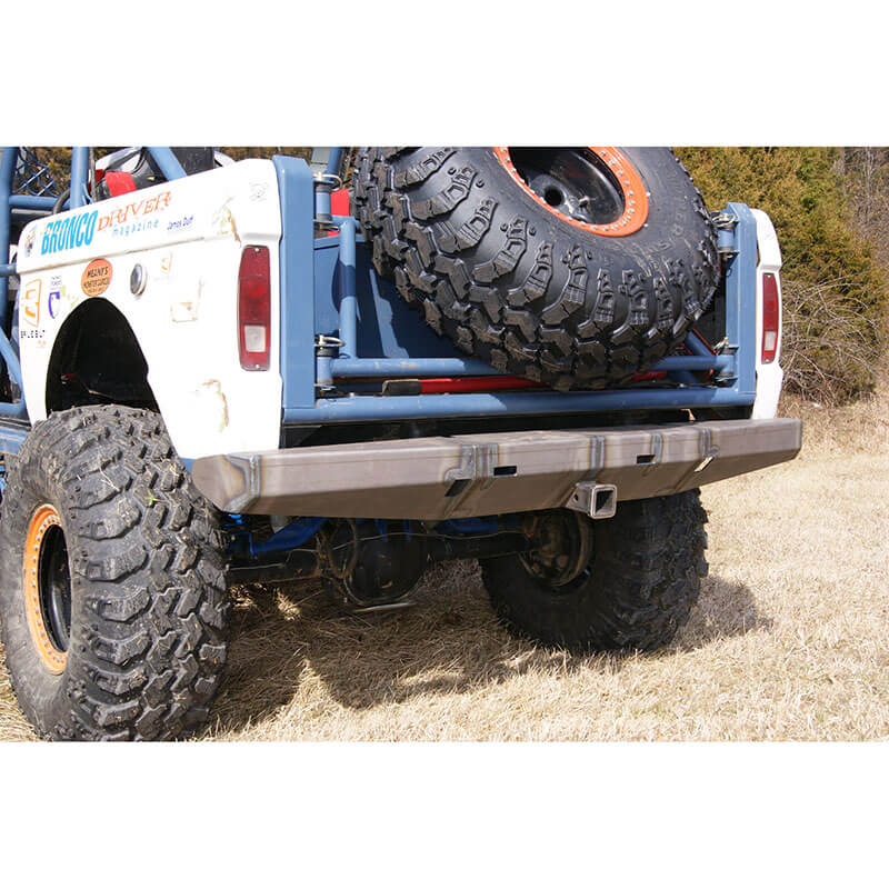 Introducing the Early Bronco Rear Plate Bumper, specifically designed for those seeking an optimal balance between strength and lightweight construction. This model features a clean design without pivots, ensuring a streamlined look.